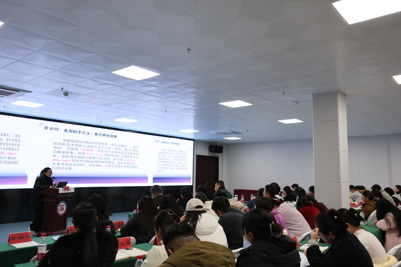 在科研进阶路径上,张会会老师为辅导员们规划了清晰的三级成长阶梯:第一级以校级项目为起点,实现科研成果从0到1的突破,建立科研信心,为后续研究奠定基础;第二级以省部级项目为依托,重点锤炼研究能力,确立研究方向,逐步形成区域专业影响力,同时提升研究规范性与科学性;第三级以国家级项目为目标,力争在国家级平台发声,产出原创性成果,为学科发展贡献智慧。