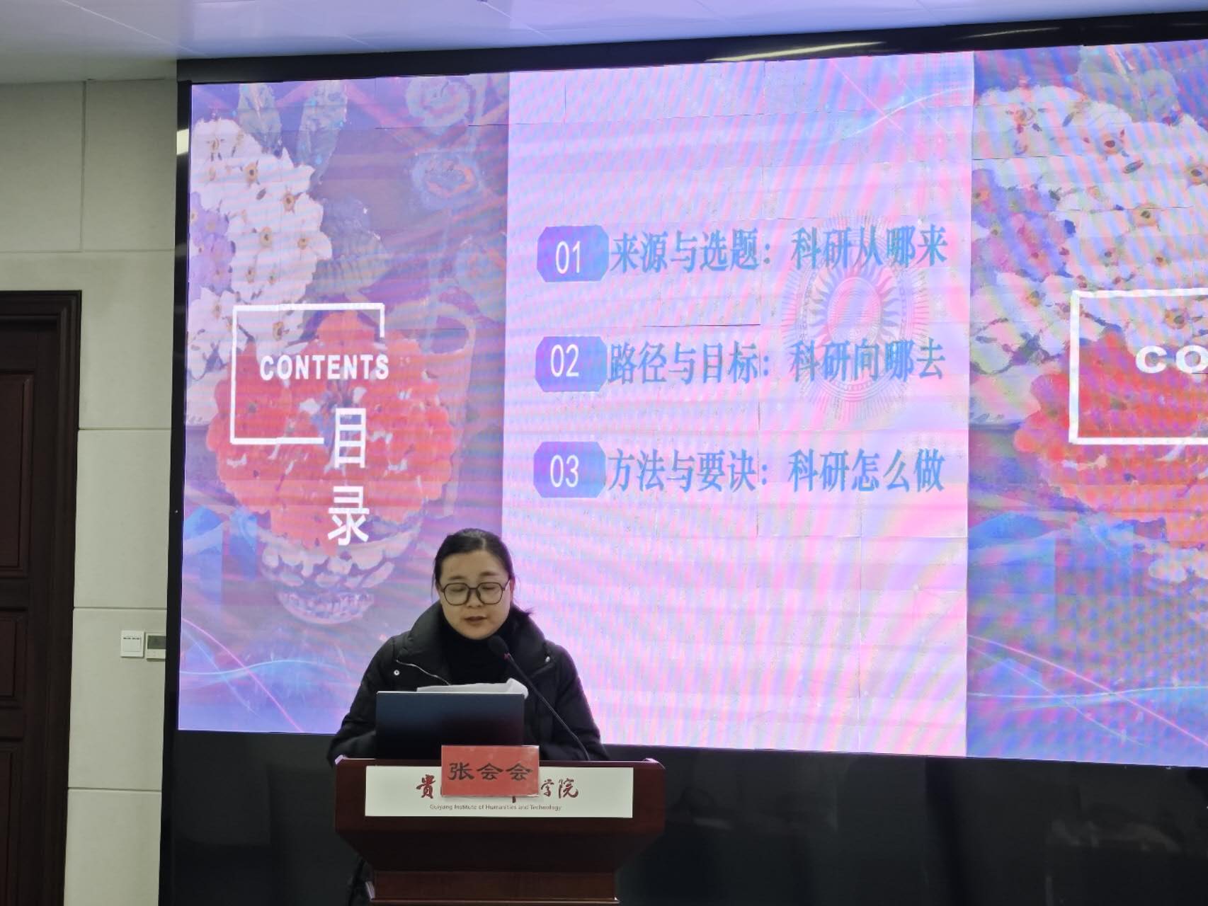 12月22日,科研处副处长张会会“科研如何为辅导员工作赋能与增值”为主题,向辅导员们讲解了如何选题、申报等内容。她打破“科研是额外负担”的认知误区,明确科研是日常工作的升华、职称晋升的刚需;指出辅导员科研的本质,是根植于日常学生工作实践,从具体工作中发现问题、提炼课题,通过系统反思实现科研与工作的相互促进,协同增效。同时,她还为辅导员们梳理了科研的三大选题方向,校级、省部级、国家级三级成长阶梯、以及科研实操的六大要诀,助力辅导员打开科研工作思路。