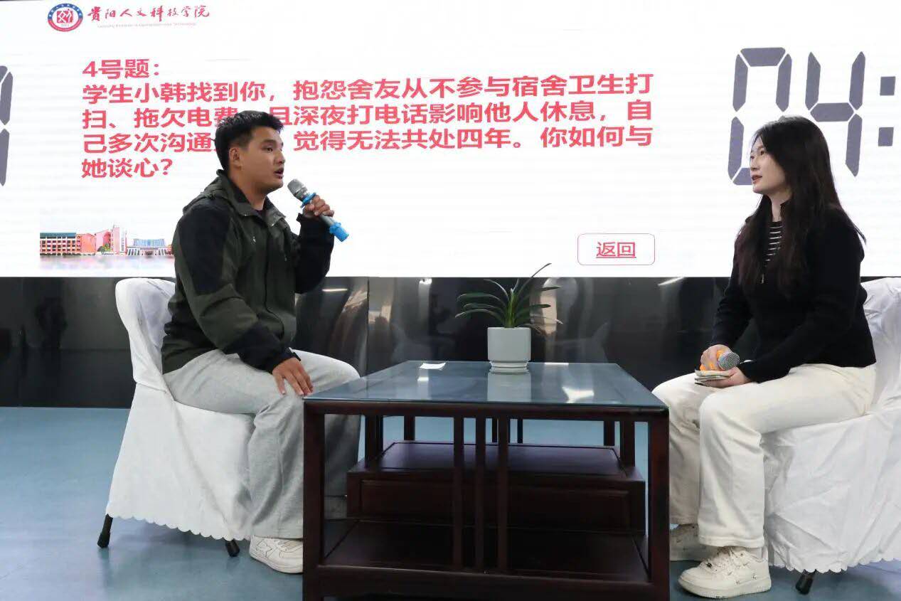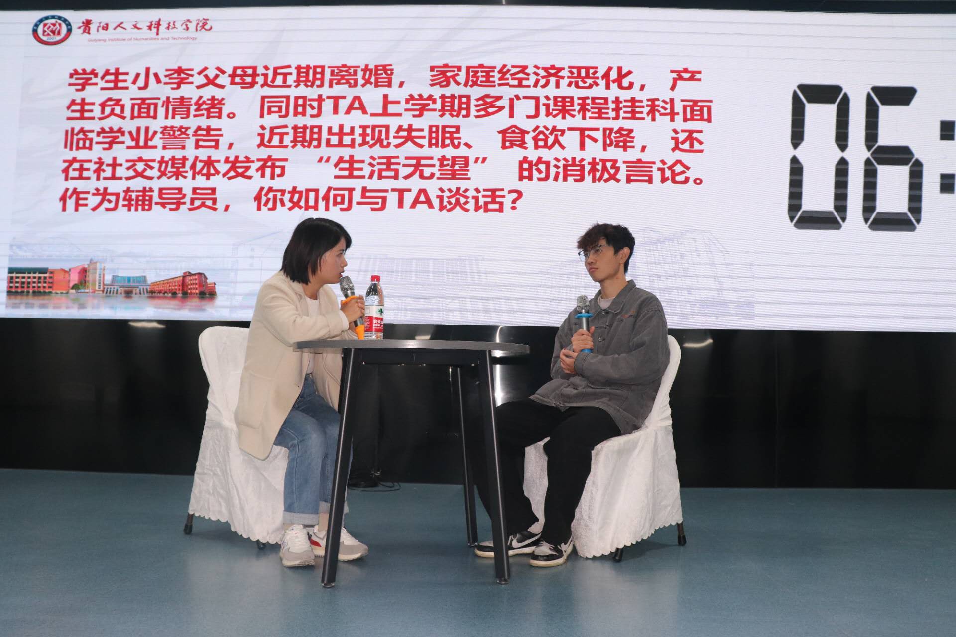 培训期间,于10月13日、10月24日、11月10日、11月26日、12月8日分别组织了五次谈心谈话,并在12月8日特邀贵州师范大学学生工作部副部长张文云,曾获“贵州省高校辅导员素质能力提升骨干训练营一等奖”的贵州师范大学辅导员张妍担任点评专家。五期谈心谈话紧扣培训主题,学生演员们充分融入角色,真实展现问题场景中的情绪与困惑,辅导员们结合工作经验,展示了不同的沟通技巧与解决思路。通过观摩他人谈话技巧及校内外专家点评指导,全体辅导员有效提升了应对实际问题的能力,为今后更好地处理学生工作积累了宝贵经验。