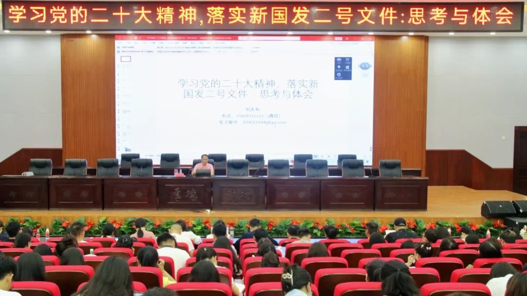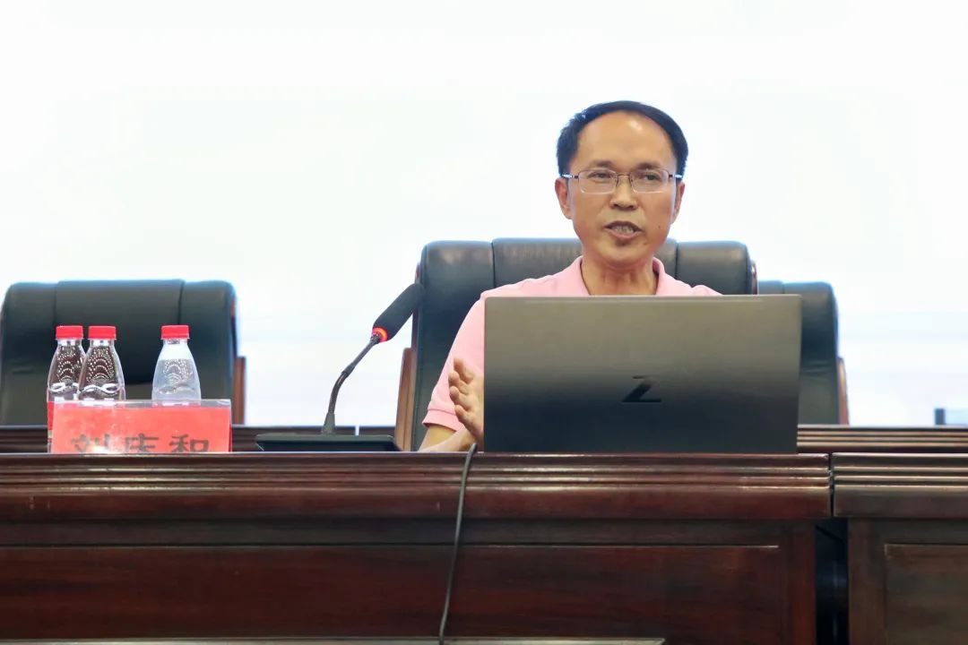 2023年6月16日下午,民建中央经济委员会副主任、民建贵州省委副主委、贵州省社会科学院研究员、省管专家刘庆和应邀为伟德官网师生作“学习党的二十大精神,落实新国发二号文件:思考与体会”专题讲座。讲座由学校党委副书记马帅主持。