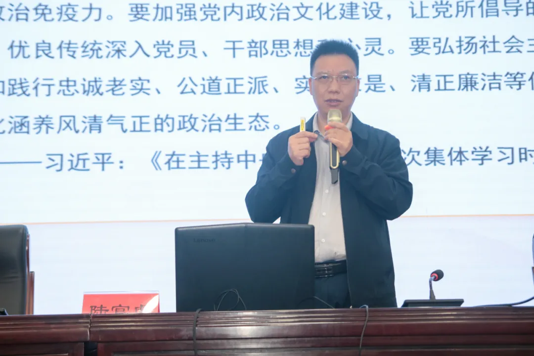 10月26日下午,学校党委常务副书记陆官虎讲授“大兴廉洁之风,常树浩然正气——严肃党内政治生活”专题党课。