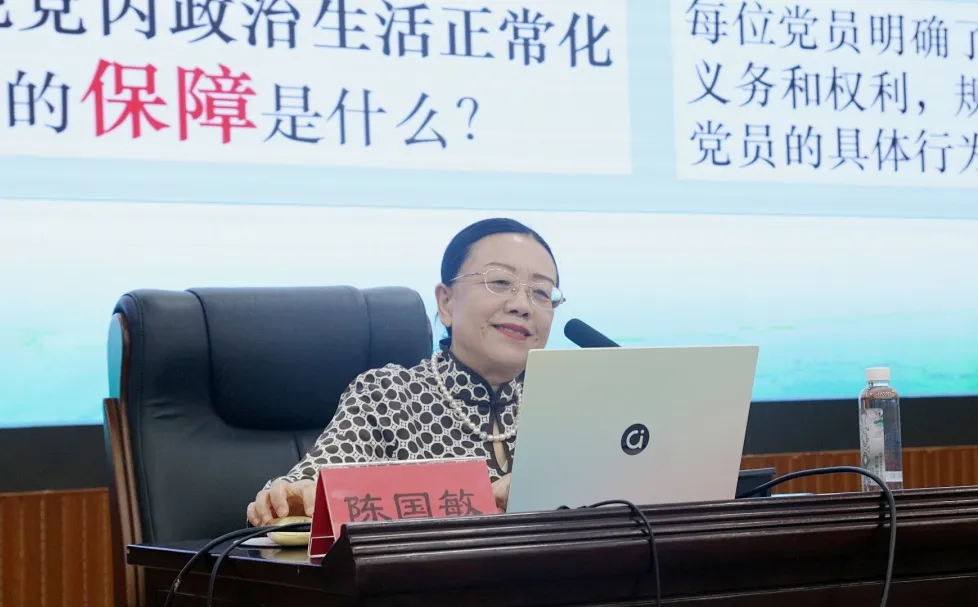 陈国敏教授指出,准确理解党员的义务与权利是共产党员立身、立业、立言、立德的基石,更是保持党的先进性和纯洁性的内在要求。她希望所有学员要以此次学习为新起点,将“知义务、明权利”融入日常,在学习中强理论、在实践中行初心,真正做到“知身份、明责任、行权利、强担当”,努力成为有理想、敢担当、能吃苦、肯奋斗的时代新人。