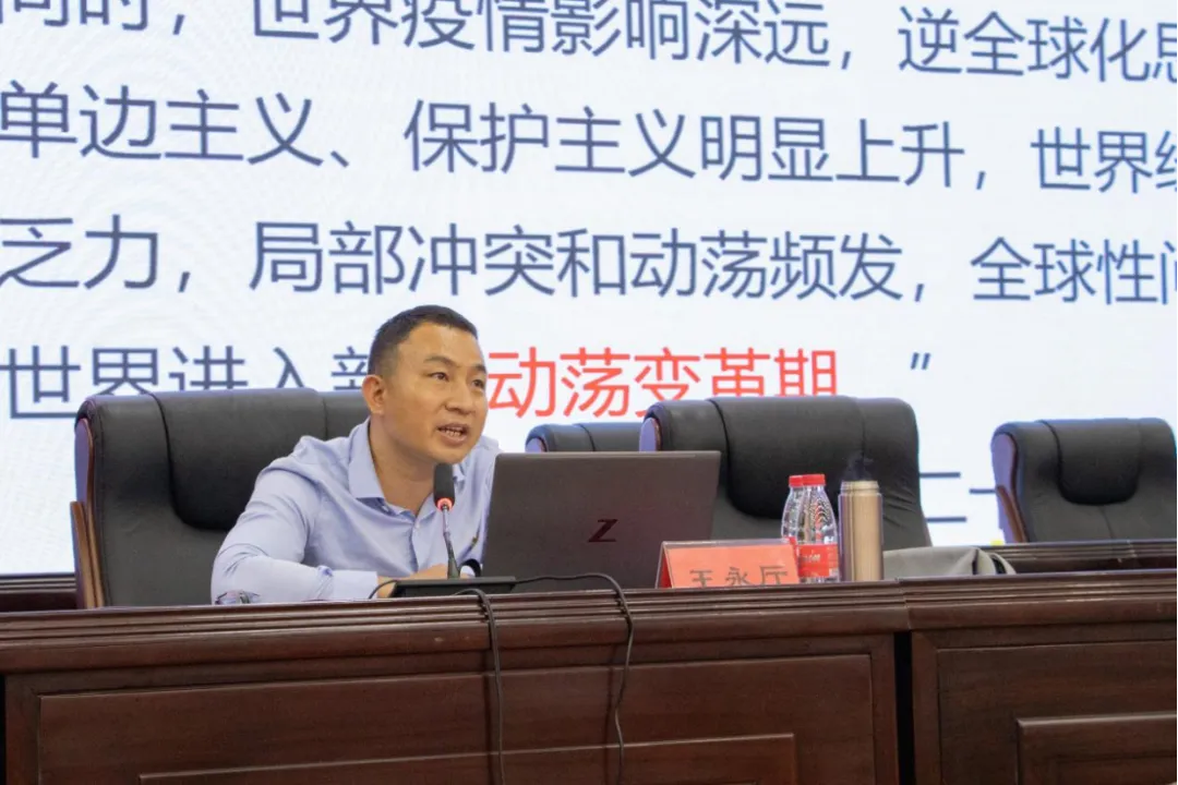 为深入学习落实和贯彻党的二十大精神,加强全体党员同志的理论学习和党性修养,6月30日下午,伟德官网在教工之家举行2023年上半年党员培训第五次集中理论学习。特邀省委党校马克思主义基本原理专业博士、省委讲师团成员王永厅以“深刻领会世界百年未有之大变局——学习党的二十大精神报告”为题作专题讲座。