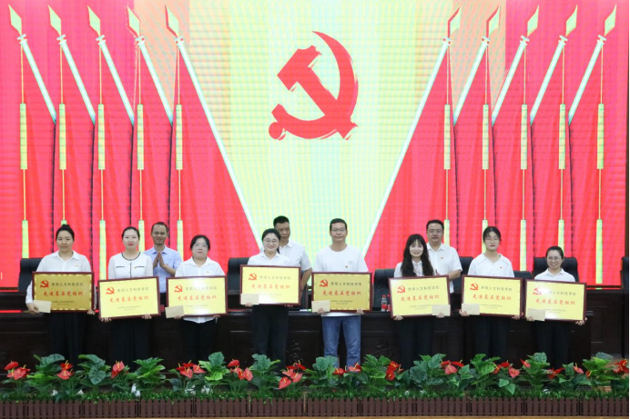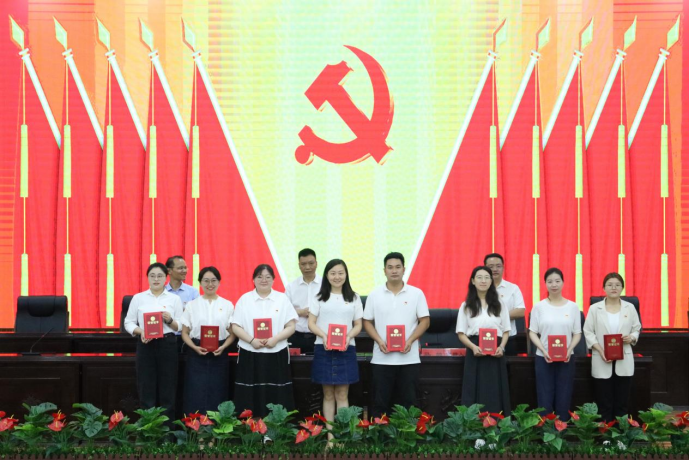 主席台就座领导为优秀共产党员颁奖