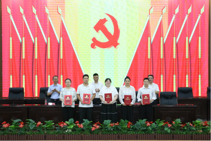 主席台就座领导为党建文章获得者颁奖