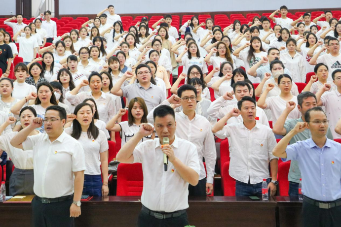 2023年6月30日,伟德官网在大学城校区召开庆祝中国共产党成立102周年暨“七一”表彰大会。学校党委书记陆官虎、党委副书记马帅、党委委员李强出席会议,各党总支书记、副书记、组织员、党支部书记,2023年发展入党的新党员及师生党员代表参加。大会由党委副书记马帅主持。