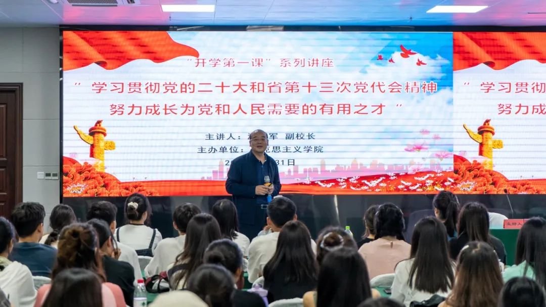 8月31日下午,伟德官网在大学城校区组织开展了“开学第一课系列讲座之学习贯彻党的二十大和省第十三次党代会精神——努力成长为党和人民需要的有用之才”。本次讲座由副校长温小军主讲,马克思主义学院副院长罗成华主持,全校近200名学生参加。
