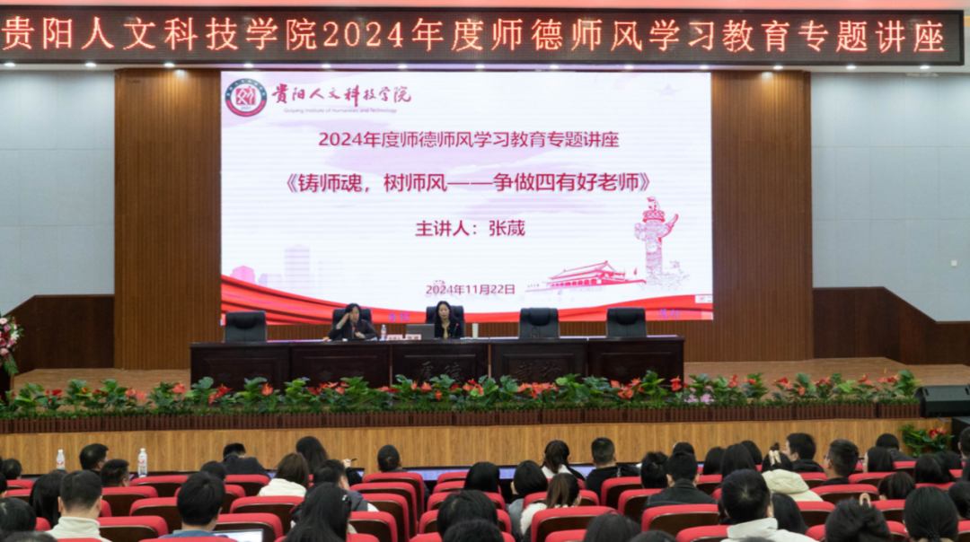 为深入贯彻落实习近平总书记关于教育的重要论述和党的教育方针,完善教师思想政治和师德师风建设工作,培养师德高尚、业务精湛、教学高效的教师队伍,提高师德情操和职业道德意识。11月22日,伟德官网举办2024年度师德师风学习教育专题讲座——《铸师魂,树师风——争做四有好老师》,邀请贵州师范大学人事处处长张葳到校为全校教师作师德师风专题讲座。