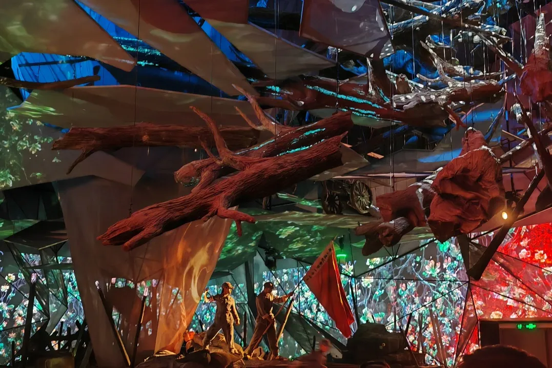 活动中,全体党员走进“红飘带”,参观全域行浸数字演艺《红飘带·伟大征程》,从历史视角、战略视角、领袖视角、士兵视角等多重叙事角度,回顾长征“无名英雄、血火洗礼、伟大转折、砥砺征途、胜利丰碑”五个部分的伟大史诗。在艺术馆内,大家被一系列以长征为主题的数字化展示深深吸引,借助高科技的互动体验,仿佛穿越时空,亲身感受到了长征途中的艰难险阻和红军战士们的英勇无畏,深刻体会到了“虽千万人,吾往矣”的英雄气概。