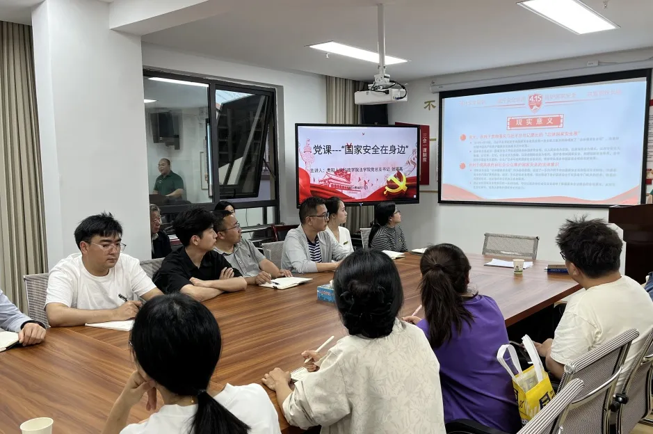 为进一步树牢总体国家安全观,增强国家安全意识,4月15日,法学院党总支书记张福高受邀为党建共建合作单位群升大智汇社区党支部进行“国家安全教育”专题授课。群升大智汇社区党支部全体党员、居委会两委成员参加会议。