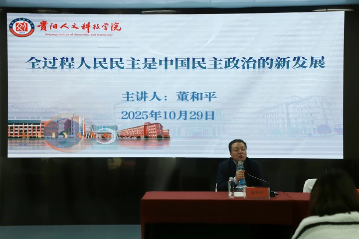 结合贵州旅游业蓬勃发展、基础设施建设持续完善等地方发展成就,董和平教授以实例生动印证了我国制度惠及广大人民的实践成效,引导师生从国家发展实践中感受制度有效性,深化对中国特色社会主义制度的认同。在民主政治建设路径上,董教授强调,全过程人民民主是我国现阶段及未来长期民主政治发展的重要目标,要坚持推进中国民主治理体系现代化,以制度自信破解发展难题,助力国家强盛与人民美好生活实现。