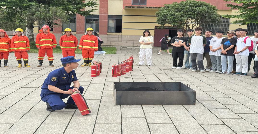师生分组进行灭火器实操演练