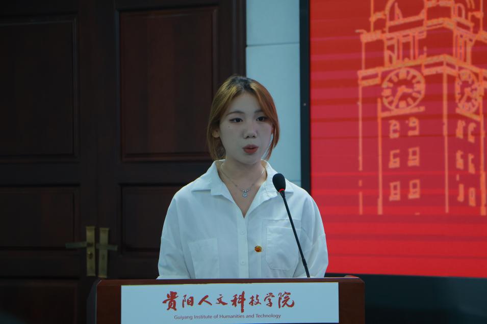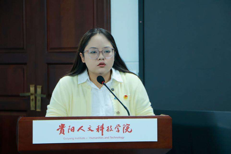 新一届学生会主席团代表柯语从学生会职能定位出发,进行履职表态。她强调,学生会将始终坚守 “服务同学” 的根本宗旨,通过创新活动形式吸引更多同学参与、加强部门协作提升工作效率,努力打造更具凝聚力与影响力的学生会组织,切实为同学成长成才与学院发展建设赋能。