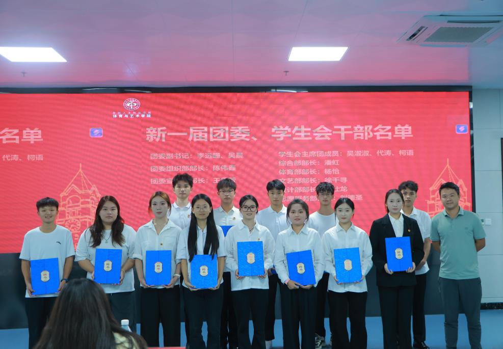 为进一步夯实学院团学工作基础,强化学生组织建设效能,10月14日,体育与艺术学院隆重举行团委、学生会换届表彰大会。学院党委副书记邓程民、团委书记张鸿雁、学生第一党支部书记杨宋妹、学生第二党支部书记吴宗敏出席大会,学院团委、学生会新老成员及兄弟学院团委、学生会代表共同参会。本次大会通过复盘过往工作、表彰先进典型、选拔新任骨干,为学院学生工作注入全新活力,助力学生组织建设水平再攀新高。