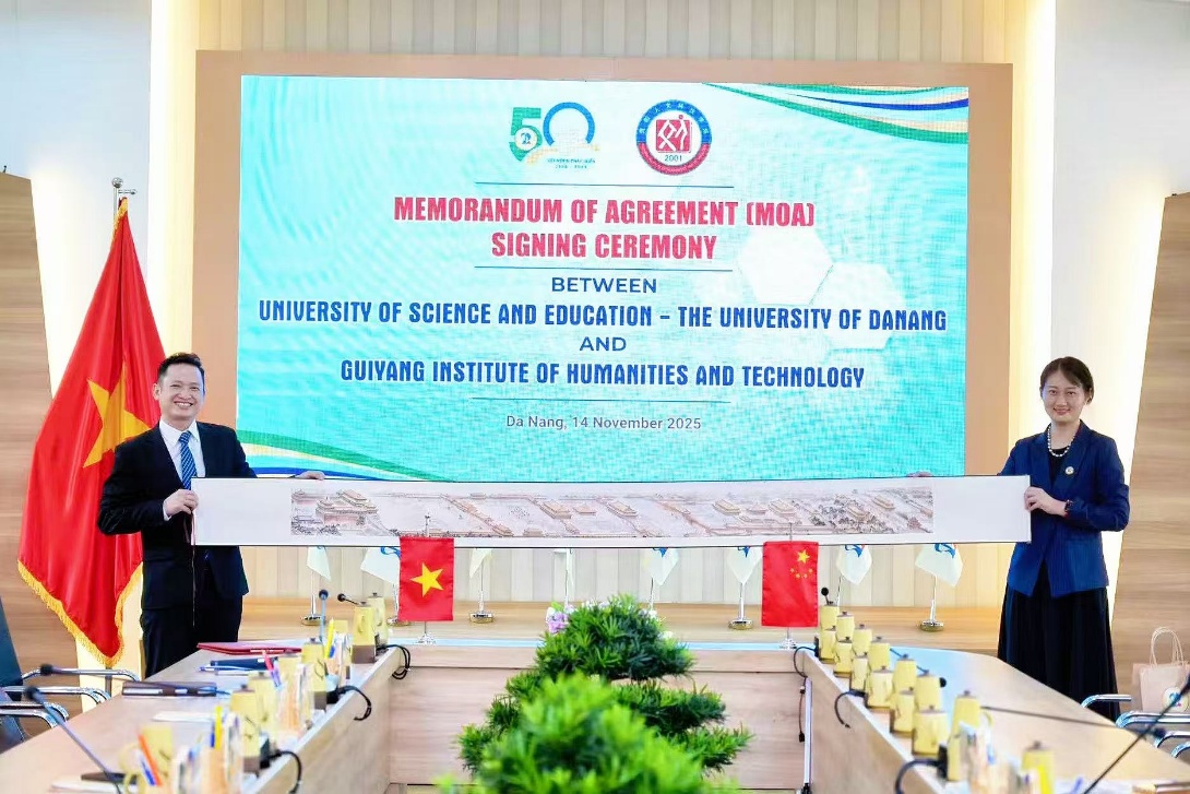 左丹副校长一行还与越南岘港师范大学相关负责人进行了专题座谈。会上,双方围绕学生短期交流项目展开深入探讨,就语言培训、文化体验、课程设计等核心议题达成共识,一致认为学生互访交流是增进两校师生情谊、促进教育理念互鉴的重要途径。座谈结束后,两校举行签约仪式,正式确定学生短期交流合作方案。