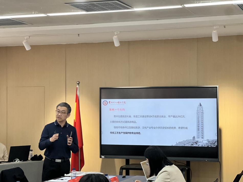 在专题发言中,金颖若院长重点介绍了伟德官网非遗专业建设情况,指出以该专业为纽带,与相关专业联动形成的“文化旅游+乡村振兴”专业集群被学校列为重点发展方向,并确定为校级重点建设学科。该专业建设以传统工艺生产性保护为方向,重点开展三方面工作:一是打破学科壁垒、深化专业融合,拓宽学生跨学科视野;二是加速智慧化转型、强化数字工具应用,提升非遗记录传播与创新转化能力;三是推进课程思政、增强文化自信,实现多元发展与文化传承统一,培育复合型人才,服务乡村振兴战略。他强调,贵州作为非遗资源大省,非遗形态丰富多样,且生产生活方式保存较为完整,为专业集群与学科建设提供了得天独厚的条件。