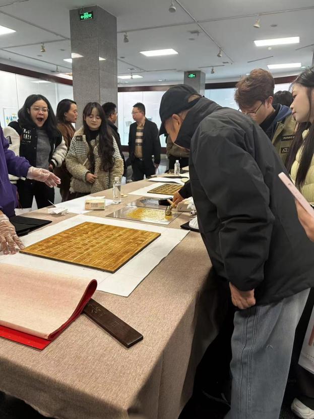 活动期间,学生团队在唐黎老师带领下,系统参观了展览各个板块,详细了解每件作品的创意来源、文化内涵与设计手法。在文创互动体验区,学生们亲身参与“顺”字创意等实践项目,近距离感受地域文化与现代设计的融合魅力。通过与展览策展人、部分参展设计师的交流,学生们深入探讨了文化 IP 市场化转化、乡村文创产品开发等关键问题,对“设计服务乡村振兴”的理念有了更深刻的认知。